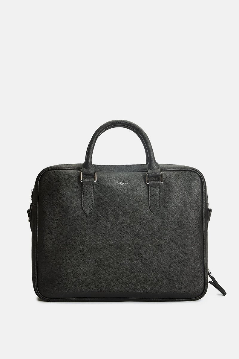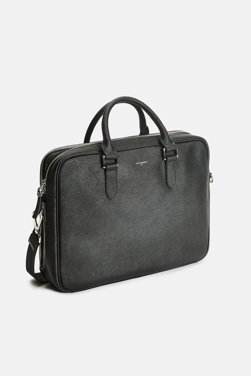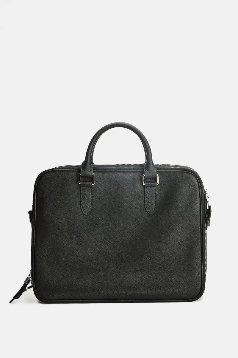 Borsa ventiquattro ore in pelle di saffiano Due scomparti con chiusura a zip Manici in pelle Fodera in cotone Tracolla regolabile e removibile in nylon Una tasca con zip interna Varie tasche piatte funzionali interne