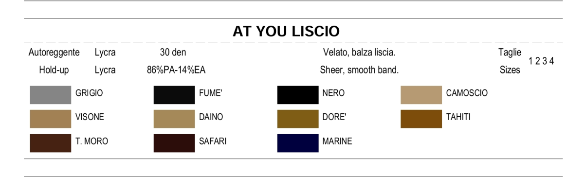 QUANTITA’ MINIMA DI ACQUISTO 3 PAIA PER COLORE E PER TAGLIA Autoreggente Atyou balza liscia elegante autoreggente velataย dall’ottima resistenza ed elevata elasticita’. balza liscia. taglie : 1 – 2 – 3 -4ย denari : 30 composizione: 86% nylonย 14% elastanย http://www.girardi.netALTRI PRODOTTI NELLA CATEGORIA