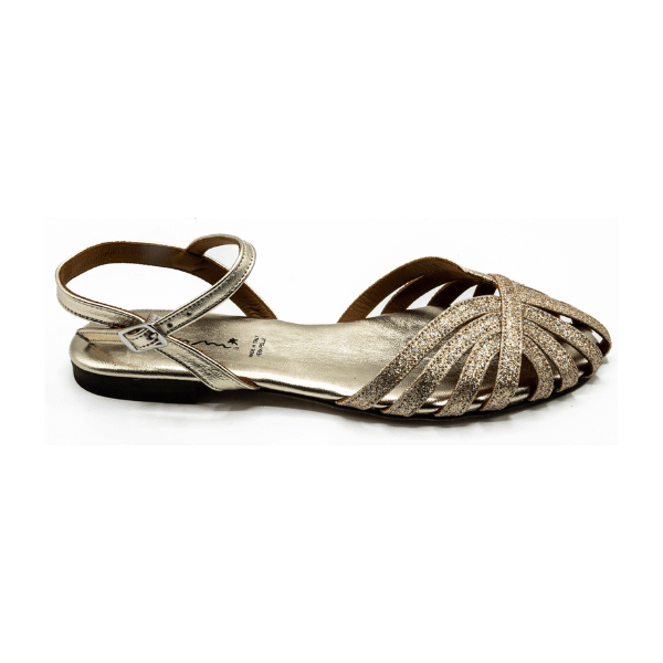 Con il loro splendente effetto glitterato platino, queste ballerine sono perfette per le donne che vogliono brillare e distinguersi. Il cinturino regolabile aggiunge un tocco di raffinatezza e dona una calzata sicura e comoda. Le nostre ballerine Michela sono ideali per chi cerca sandali flat da donna, grazie al loro design basso e confortevole. Realizzate con materiali di alta qualitร , garantiscono una camminata leggera e comoda tutto il giorno.