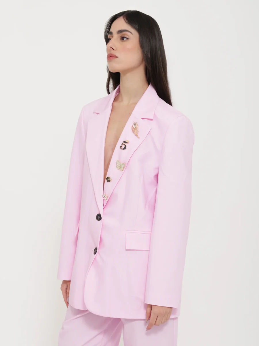 Blazer Mobiletto Rosa Chiaro con Applicazioni Spille “Tensione”