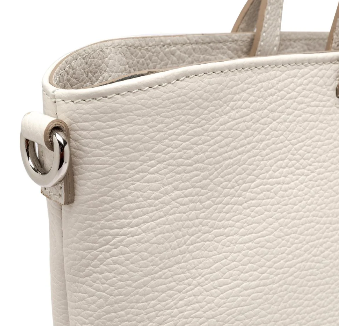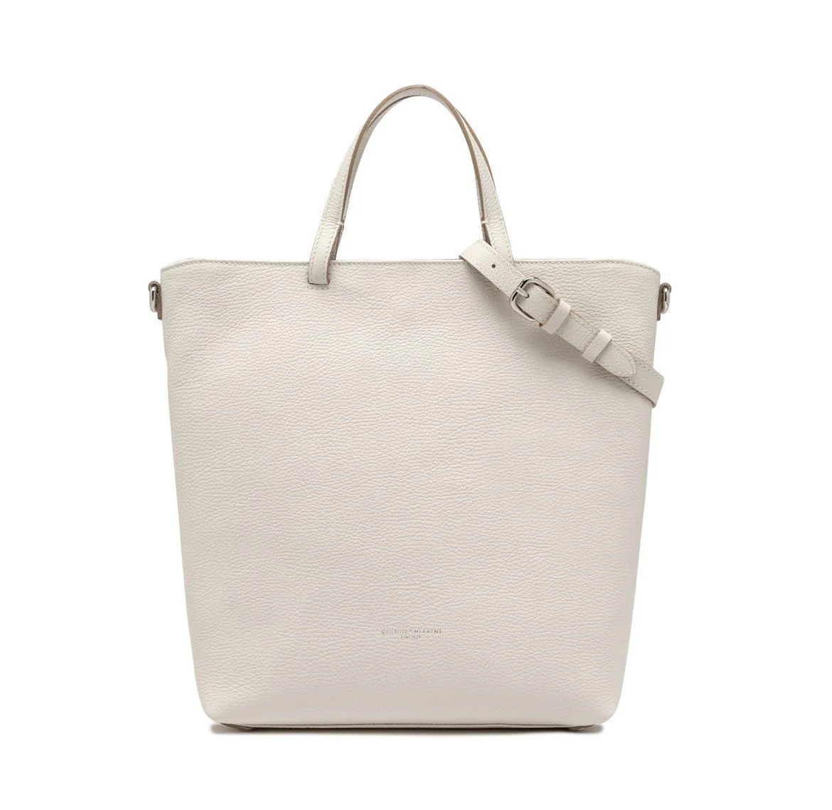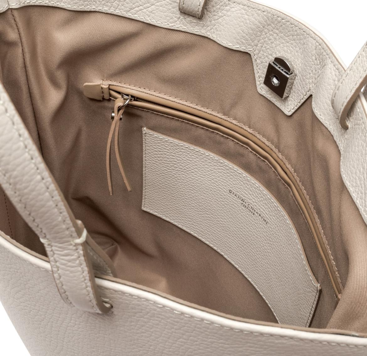 La borsa Aida รจ la nuova linea by Gianni Chiarini Firenze dall’allure contemporaneo e dalla silhouette minimal. Realizzata in pelle martellata color latte. Presenta una tracolla in pelle per una duplice portabilitร e pratici piedini sul fondo. Chiusura a scatto. Interno foderato in tessuto con tasche a parete. Dimensioni: 30x35x13 cm.