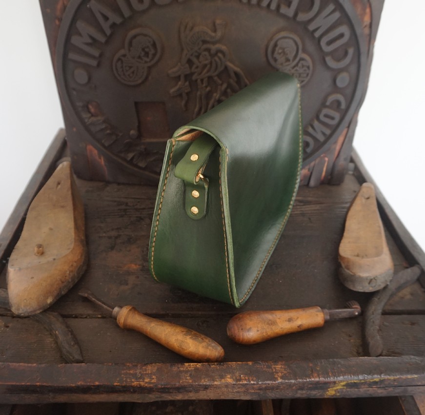 Borsa Tolfa grande in pelle vegetale verde bottiglia lavorata a mano