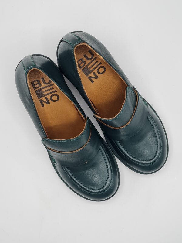 BUENO MOCASSINO PELLE VERDONE TACCO MEDIO