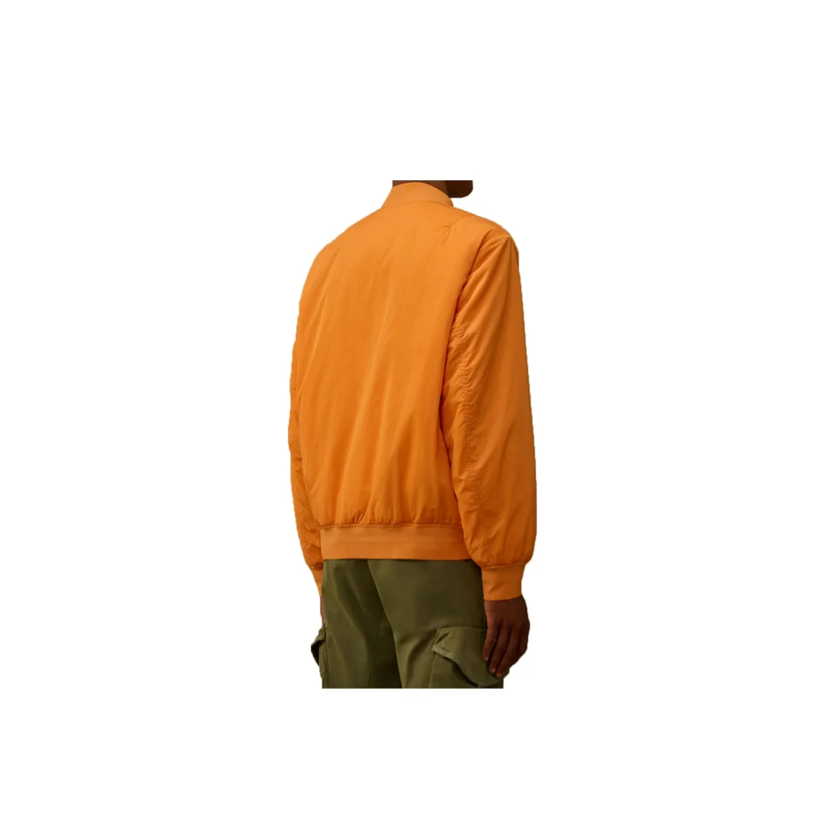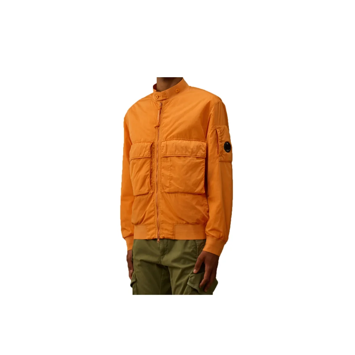 Bomber realizzato in Chrome-R, un nylon multifilamento lucido e riciclato al 100%, ottenuto da scarti di lavorazione e trasformato in una nuova fibra certificata Global Recycled Standard (GRS). La giacca presenta un colletto a costine con abbottonatura, una chiusura full zip a doppio cursore e tasche anteriori e laterali con bottoni automatici. Rifinita con l’iconica Lens di C.P. Company e polsini e orlo a costine. Imbottito in ovatta per un maggiore comfort. Tinto in capo con trattamento anti-goccia. Regular fit.
