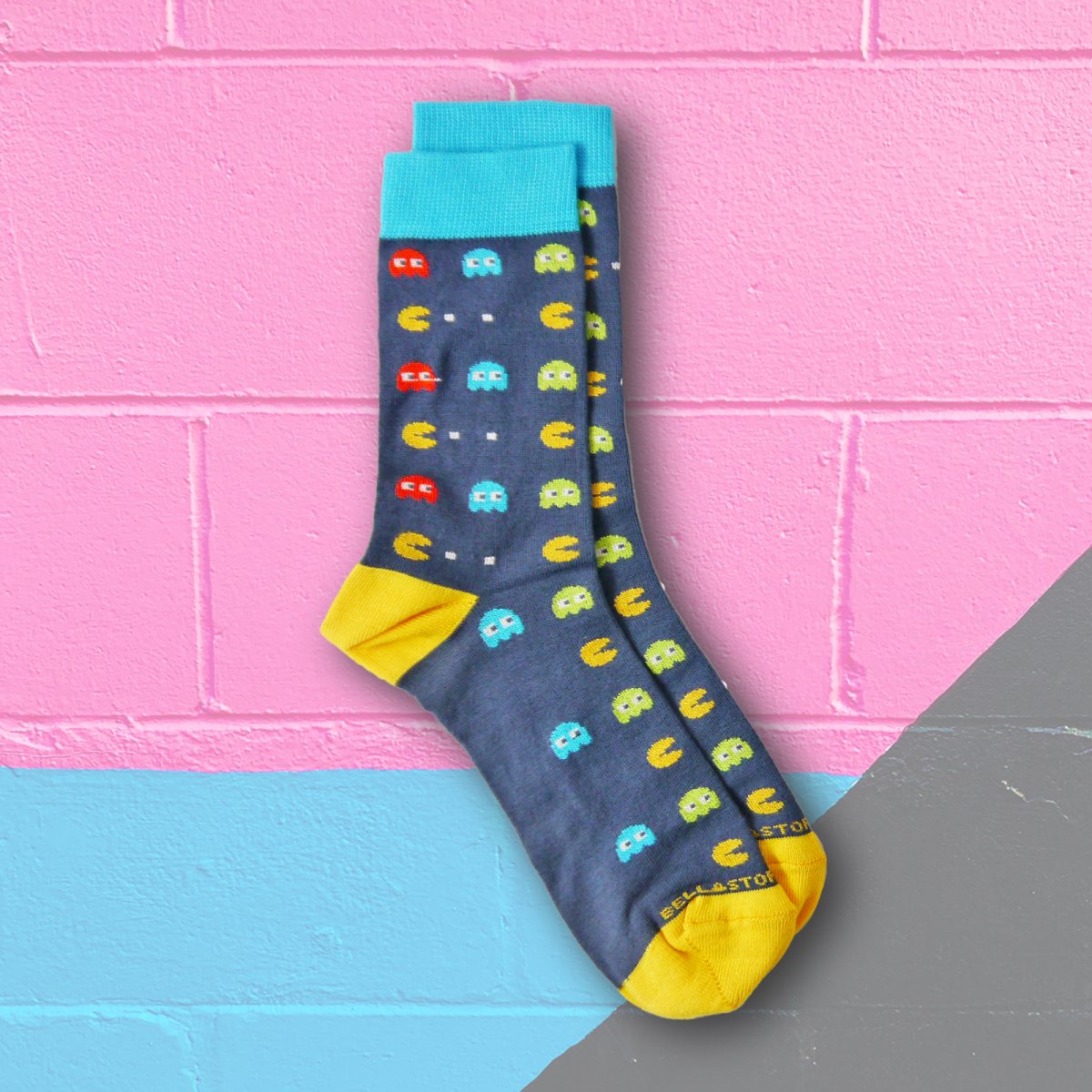 E se anche tu hai nostalgia degli anni ’80, i calzini Pacman saranno ancora di salvezza. E a chi è venuto in mente di creare un videogioco così iconico? È grazie a Toru Iwatani, che durante una cena con amici, ha avuto questa idea geniale davanti ad una pizza tagliata, a cui era stata tolta una fetta. Pronti a giocare? La sfera gialla, Pacman, deve mangiare tutti i puntini ben allineati all’interno del labirinto e non deve assolutamente farsi toccare dai fantasmi, per non perdere una delle vite a disposizione. Se poi, si riesce a prendere una delle pillole, per…
