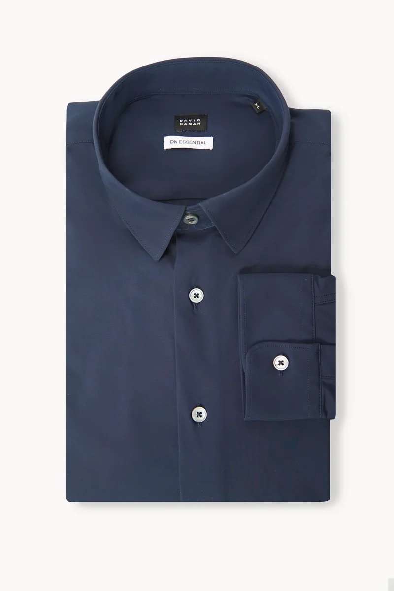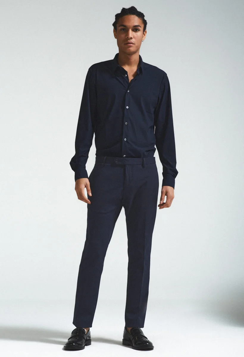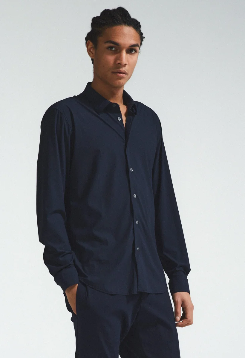 Camicia manica lunga Collo regolare Bottoni madreperla sul davanti e maniche Tessuto in nylon performance H24 Slim fit Il modello รจ alto 187 cm e indossa una taglia L.