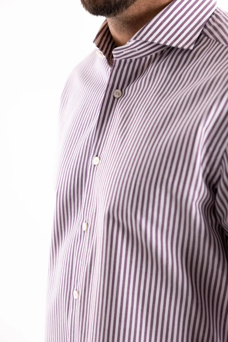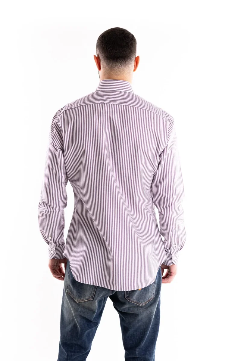 La camicia Wrinkle Free con collo francese, utilizza la temperatura del corpo per rimanere senza pieghe durante l’intera giornata. Il vostro look sarà sempre perfetto senza compromettere il comfort ed i dettagli sartoriali, come le stecche estraibili e le cuciture all’inglese. L’incredibile facilità di stiro per questa camicia rappresenta il massimo standard di qualità sul mercato per un capo che trova nella performance il suo punto di forza. Di elevata qualità questo tessuto bianco con riga bordò. Composizione 100% cotone. Il modello è alto 1.80 e indossa una 41