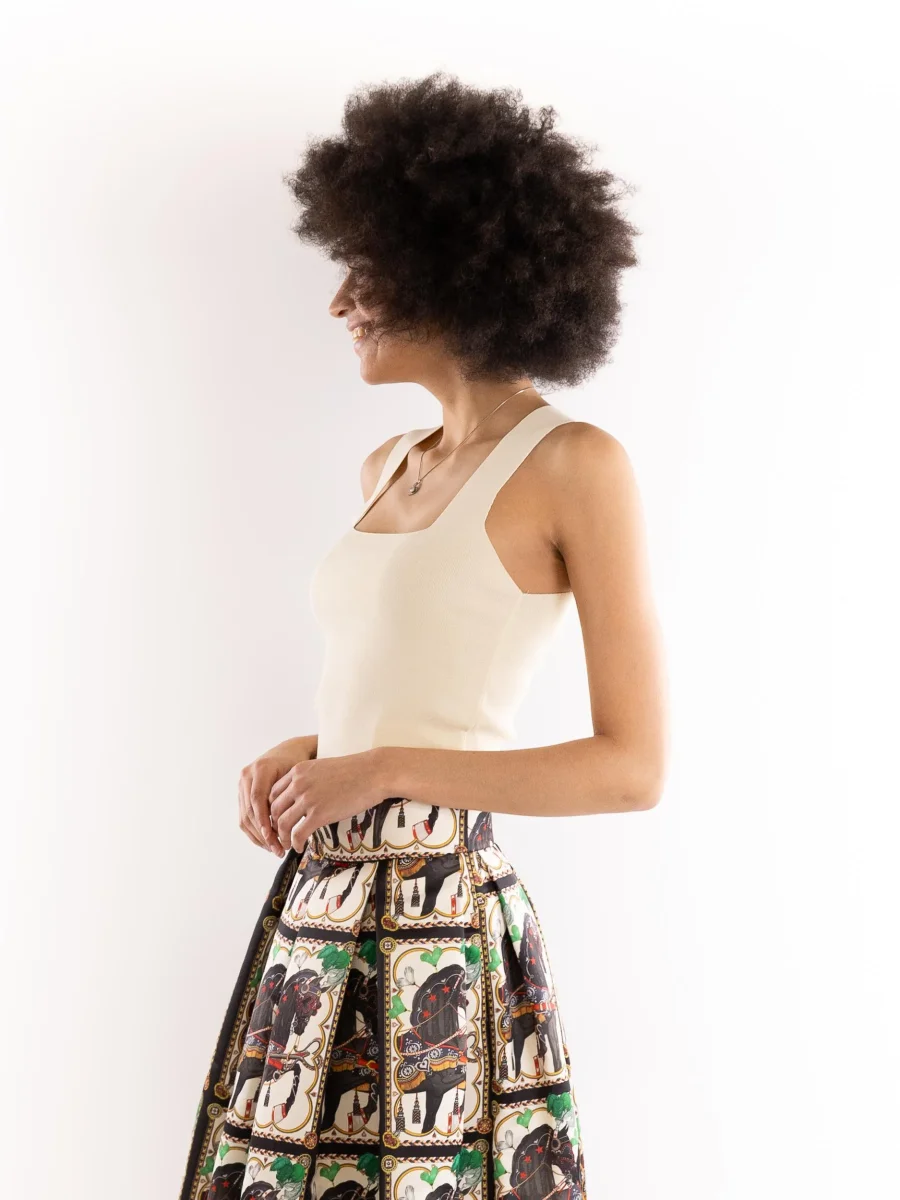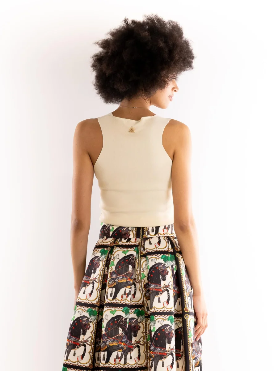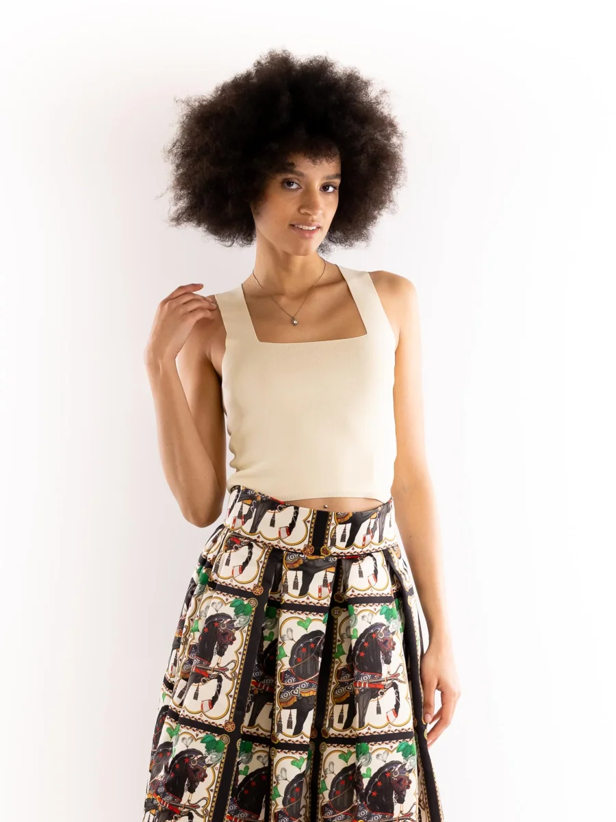 Canotta basica in tessuto color panna. Scollatura squadrata. Spallina larga. Vestibilitร regolare. Composizione 65% viscosa 35% poliamide. Altezza modella 1,75 indossa una S