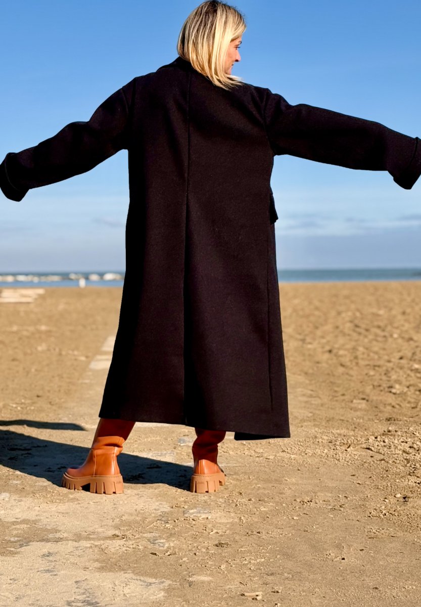 Aggiungi un tocco di stile impeccabile al tuo guardaroba con il cappotto lungo over a doppio petto, il capo ideale per affrontare la stagione fredda con eleganza, praticitร e un fascino contemporaneo.