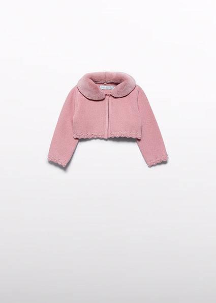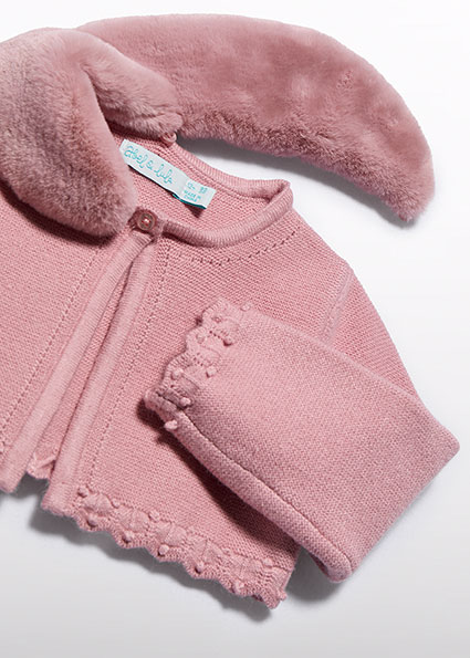 Cardigan in maglia colletto pellicciotto neonata – ABEL & LULA