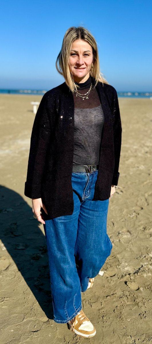 CARDIGAN SENZA BOTTONI CON MICRO PAILETTES