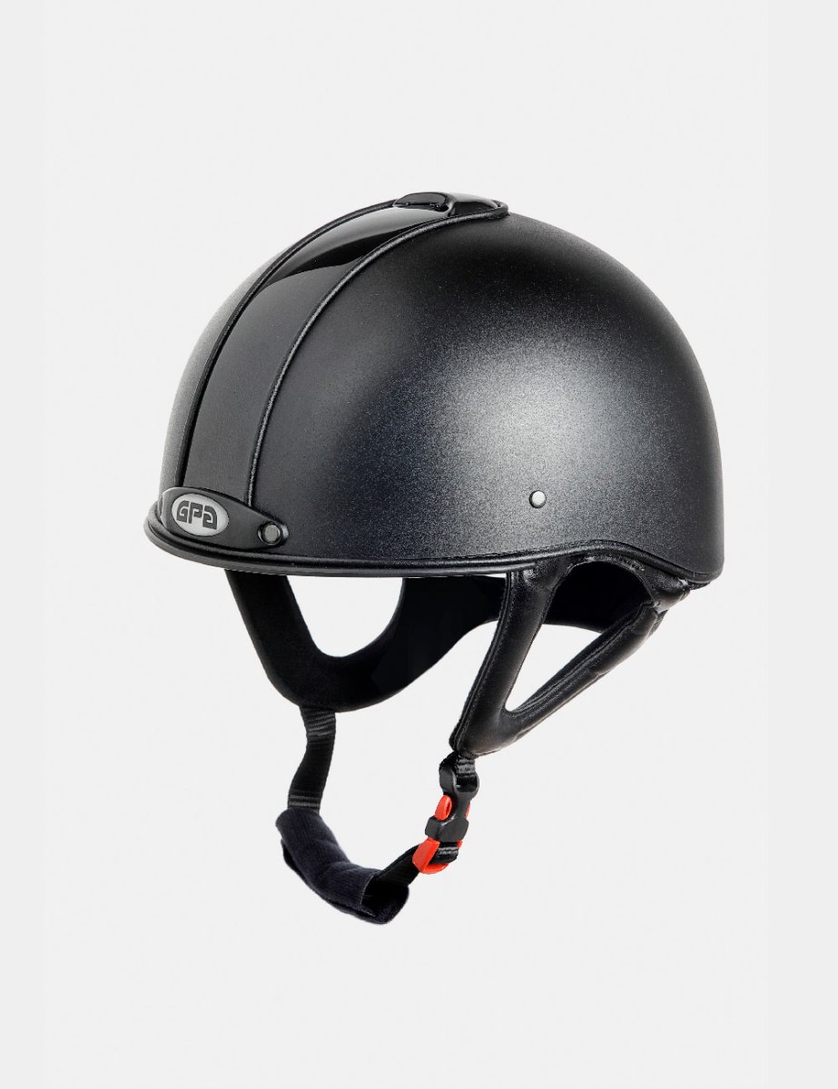 Il casco Jock Up, pensato e creato dal brand francese GPA, presenta una forma ergonomica con calotta sferica e prese dโaria frontale per garantire al fantino il massimo comfort.