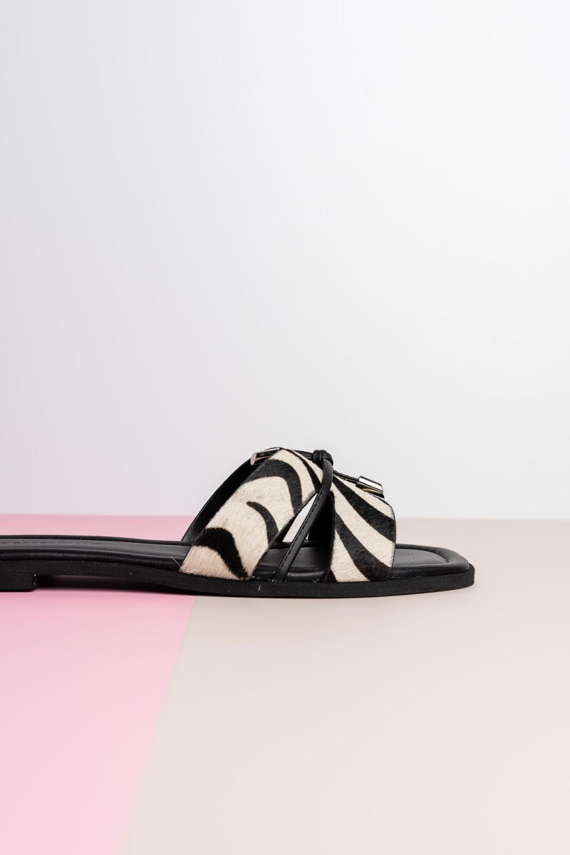 Le ciabatte Carolina rappresentano l’equilibrio perfetto tra comfort e stile. Realizzate artigianalmente in Italia con vera pelle, offrono una calzata comoda e leggera, ideale per le giornate estive. Il design elegante con fasce incrociate e dettaglio centrale in metallo conferisce un tocco di raffinatezza, mentre la stampa zebrate aggiunge un tocco glamour ai tuoi outfit.