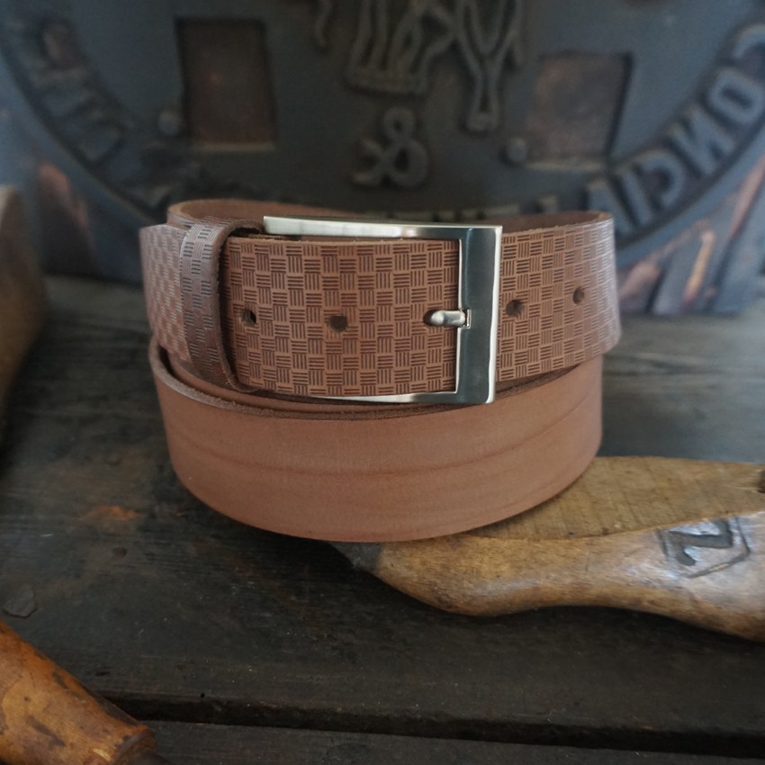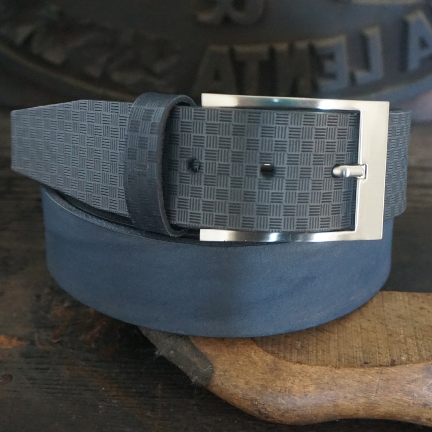 Cintura in cuoio uomo mod. griglia altezza 4 cm.