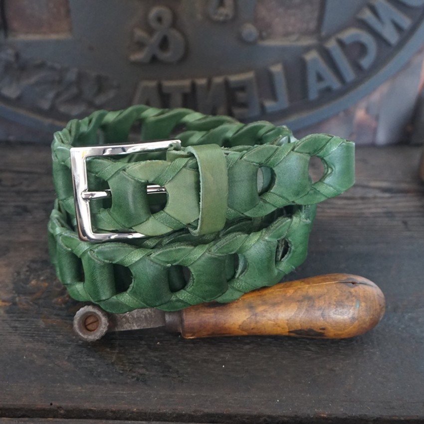 Cintura artigianale intrecciata in pelle art. Tondino medio altezza 3.5 cm.