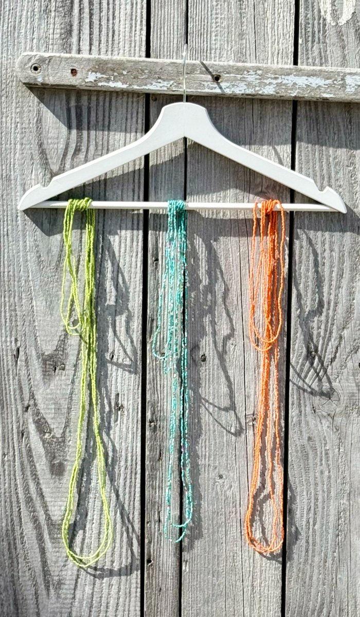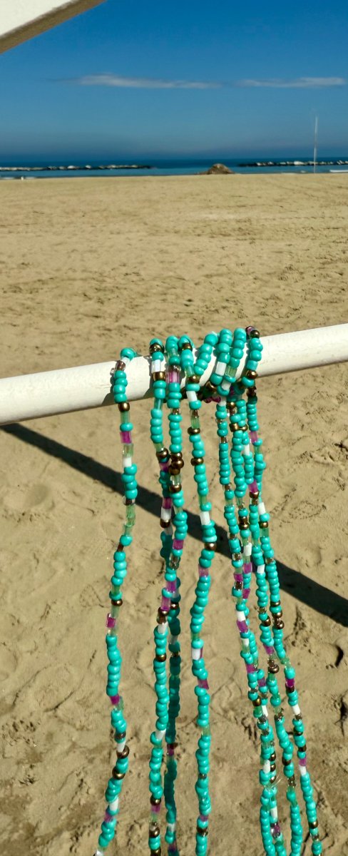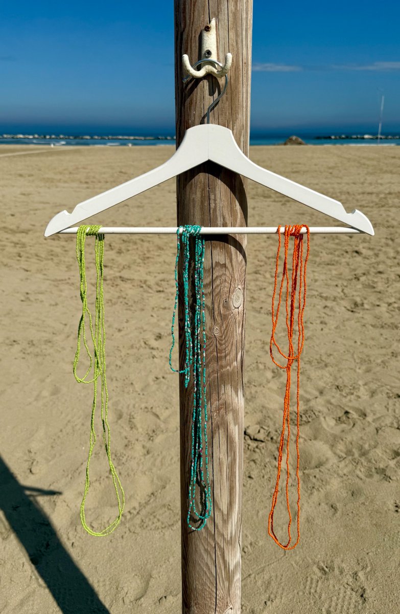 Aggiungi un tocco di colore e originalitร al tuo look con questa splendida collana lunga tubolare di perline, un accessorio unico dallo stile boho chic perfetto per ogni occasione.