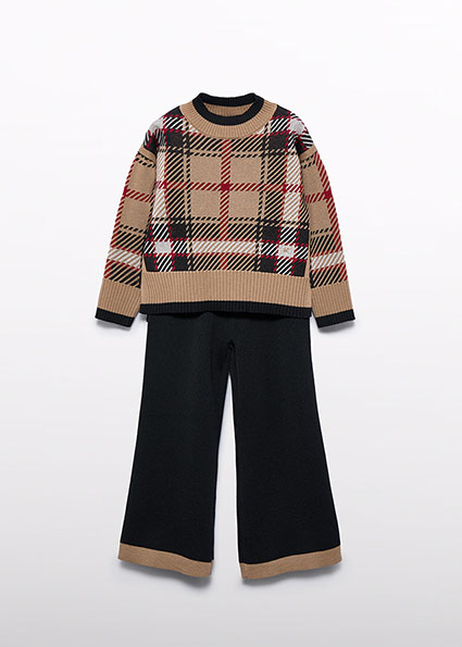 Completo in maglia quadri pantalone bambina – ABEL & LULA