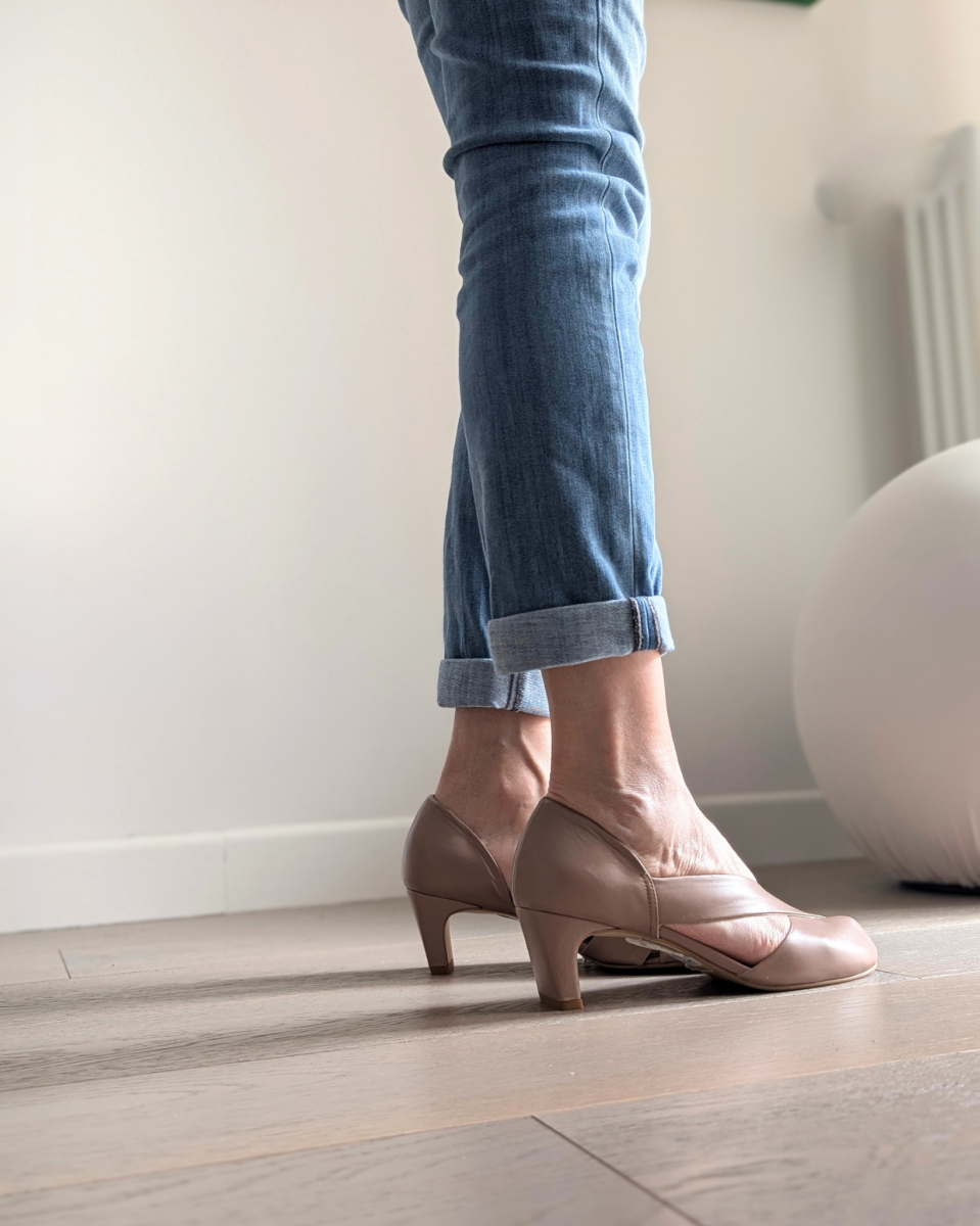 Il tacco è a coda alto 5 cm: l’altezza giusta che assicura comodità e preserva la postura. Un tacco a caduta verticale con una base d’appoggio larga che mantiene un’estetica slanciata e decisamente retrò.