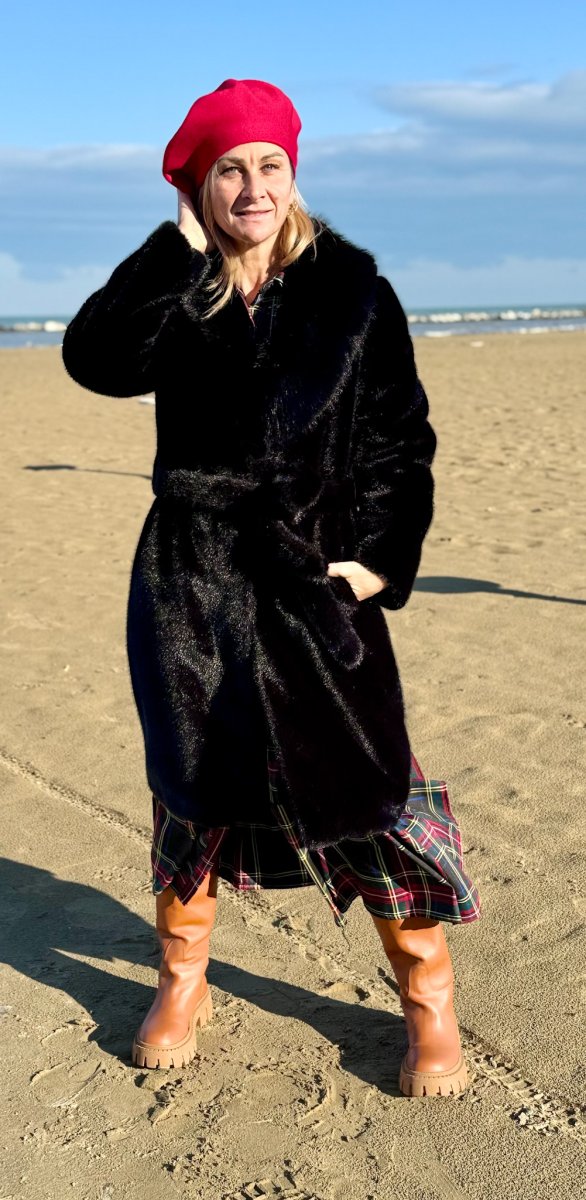 ECO PELLICCIA MIDI CON CINTA E COLLO AMPIO