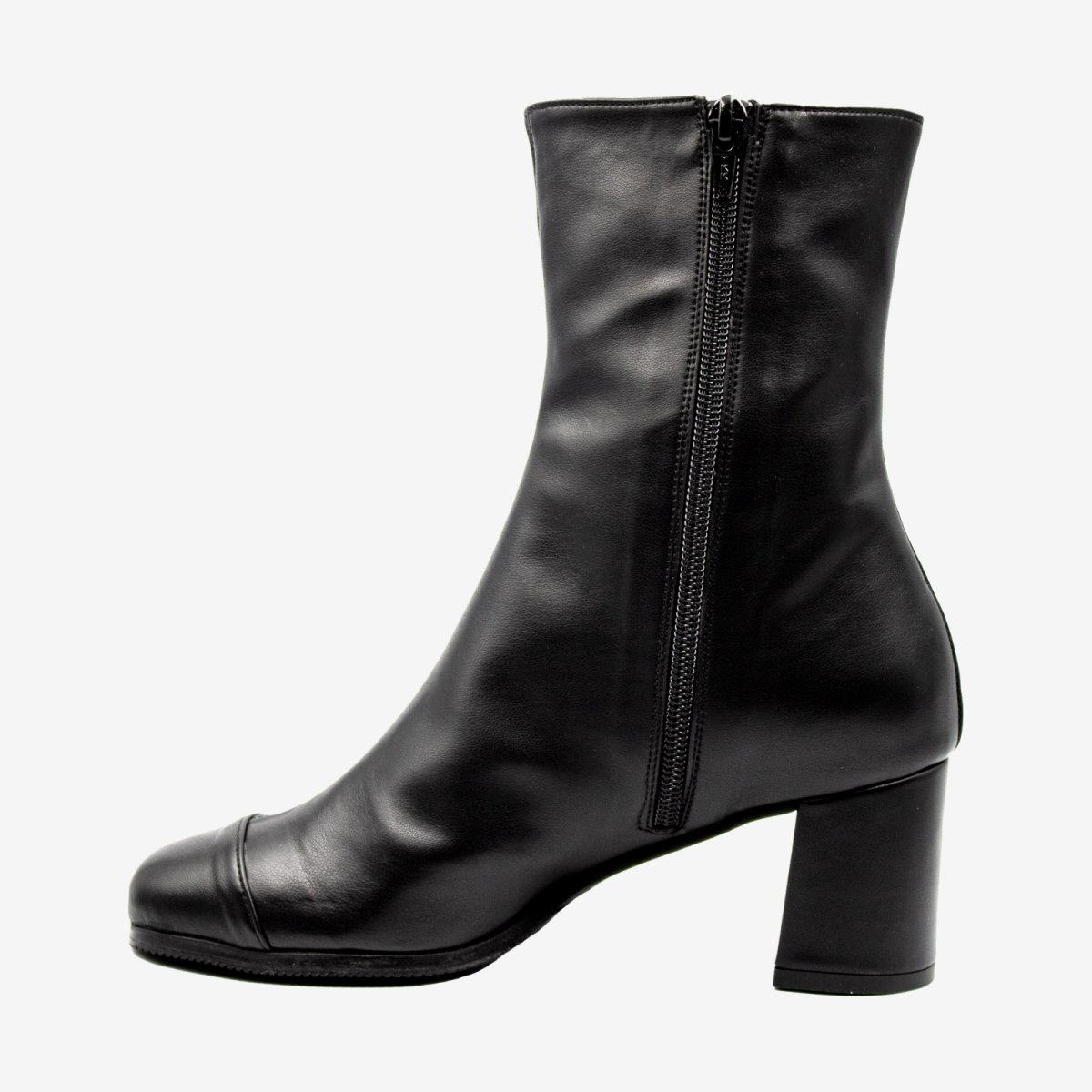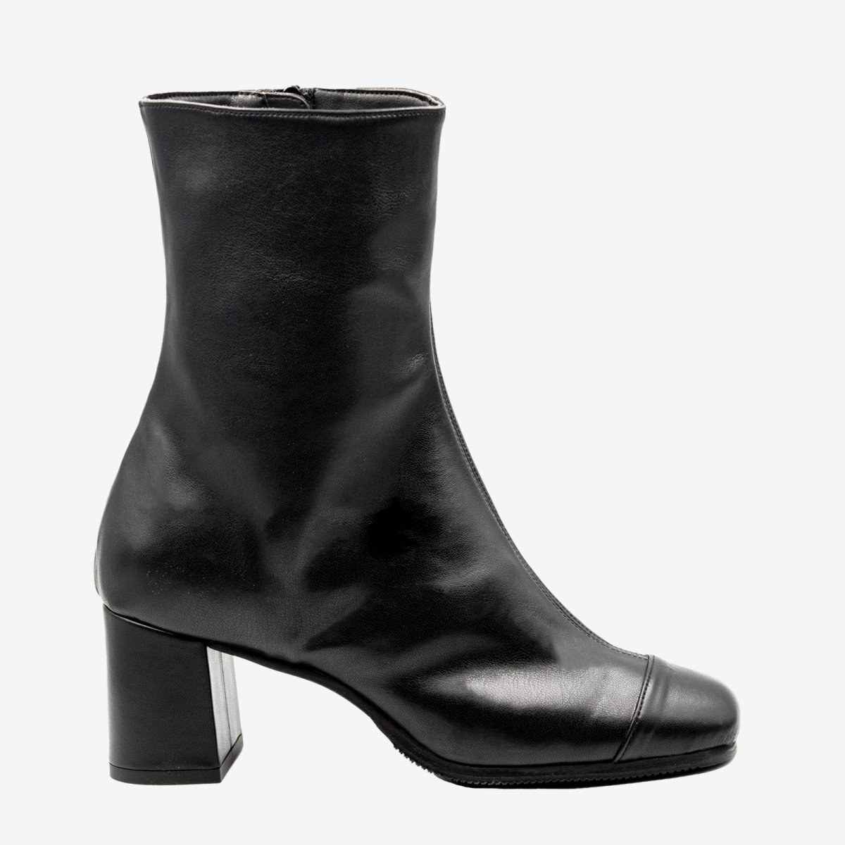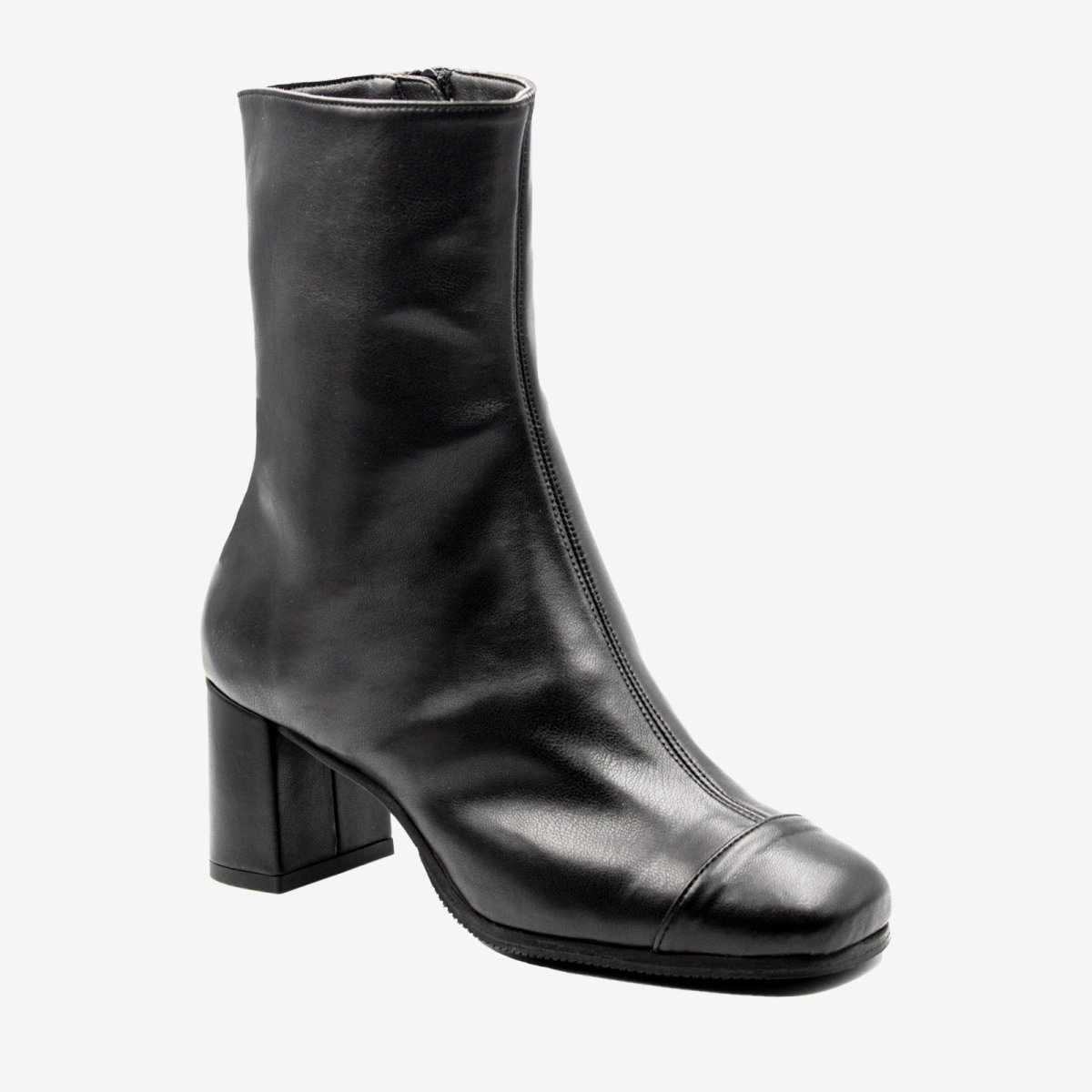 Uno stivaletto tronchetto nero che non puรฒ mancare nel guardaroba femminile. Semplice se abbinato ad un jeans skinny ed elegante se abbinato ad una gonna lunga o a ruota. Stivaletto tronchetto realizzato in pelle di mais biopolioli, resistente allโ€™acqua e molto traspirante Tacco comodo e largo da 60mm largo. Spunterno in bio polioli vinile nero Fodera traspirante in microfibra Cerniera interna tono su tono, per indossarlo comodamente Suola realizzata in morbida microporosa, con dettaglio antiscivolo in gomma millerighe