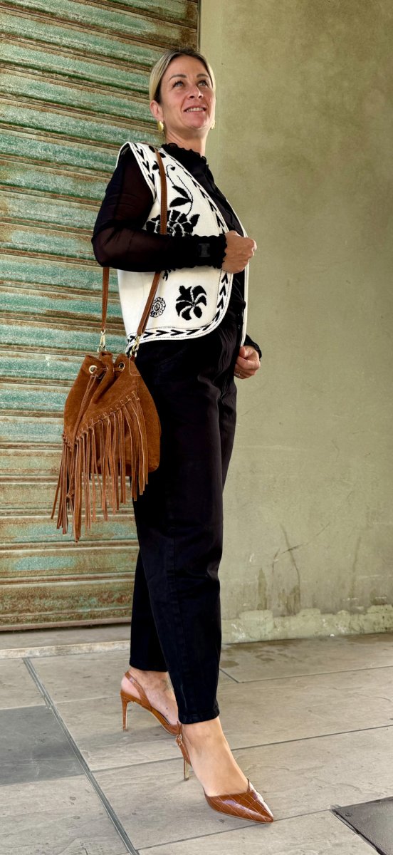 Il gilet corto รจ il dettaglio che fa la differenza. Indossalo in ufficio per un look professionale ma originale, nel tempo libero per aggiungere un tocco chic a un outfit quotidiano, o in occasioni speciali come cene ed eventi serali, per un risultato sofisticato e di grande impatto.