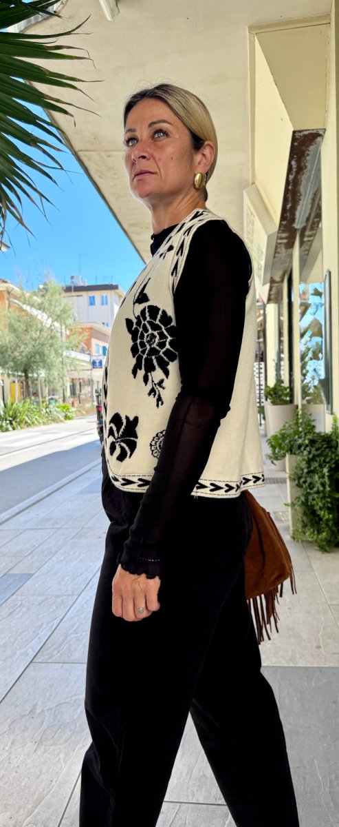 Gilet corto senza bottoni con fantasia floreale – stile e unicitร