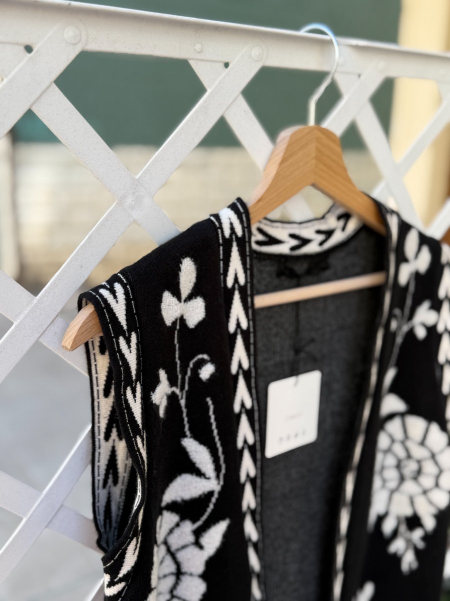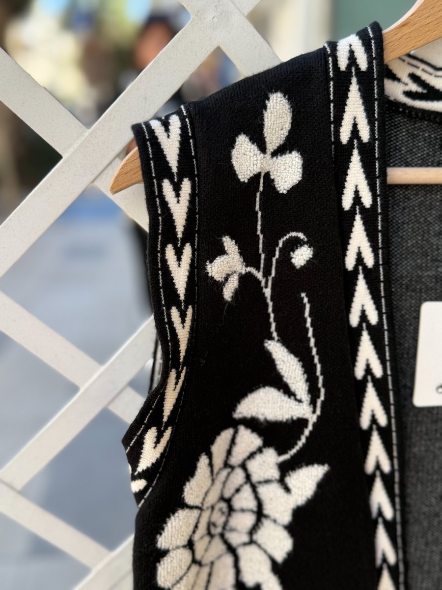 Realizzato in un tessuto leggero ma strutturato, presenta una raffinata fantasia floreale, simbolo di ricercatezza e femminilitร . Il design corto e minimal, privo di bottoni, lo rende pratico da indossare sopra top, camicie o abiti, creando un effetto layering contemporaneo e sempre chic. La linea morbida e leggermente svasata garantisce comfort e libertร di movimento, senza rinunciare al tocco glamour che contraddistingue questo capo.
