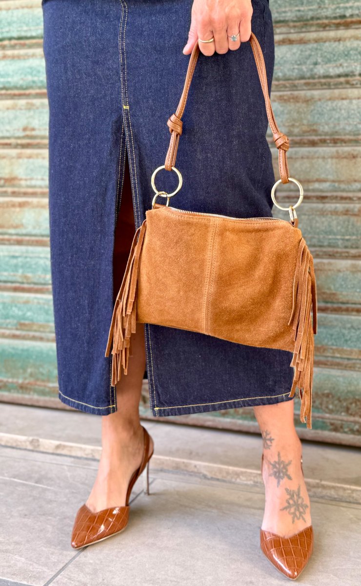 Il spacco frontale aggiunge un tocco di sensualitร e movimento, creando un contrasto interessante con la linea lunga e fluida della gonna. Questa caratteristica permette anche una maggiore libertร di movimento, rendendola ideale per passeggiate o eventi casual. Le tasche sul retro completano il design funzionale e pratico, conferendo alla gonna una silhouette rilassata ma raffinata. Le tasche aggiungono anche un dettaglio di stile che arricchisce ulteriormente il capo.