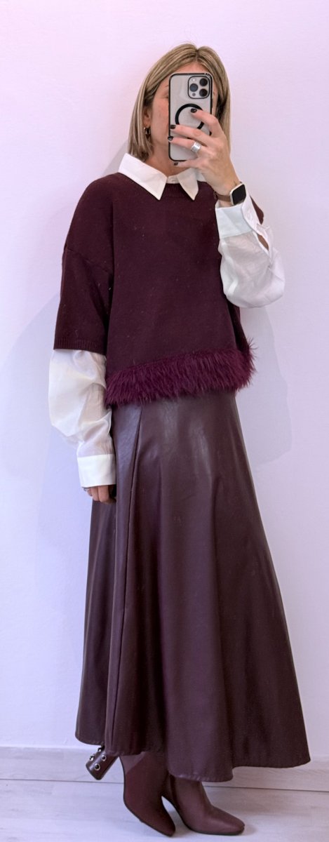 Perché Scegliere la Gonna Midi a Ruota in Simil-Pelle Bordeaux?
