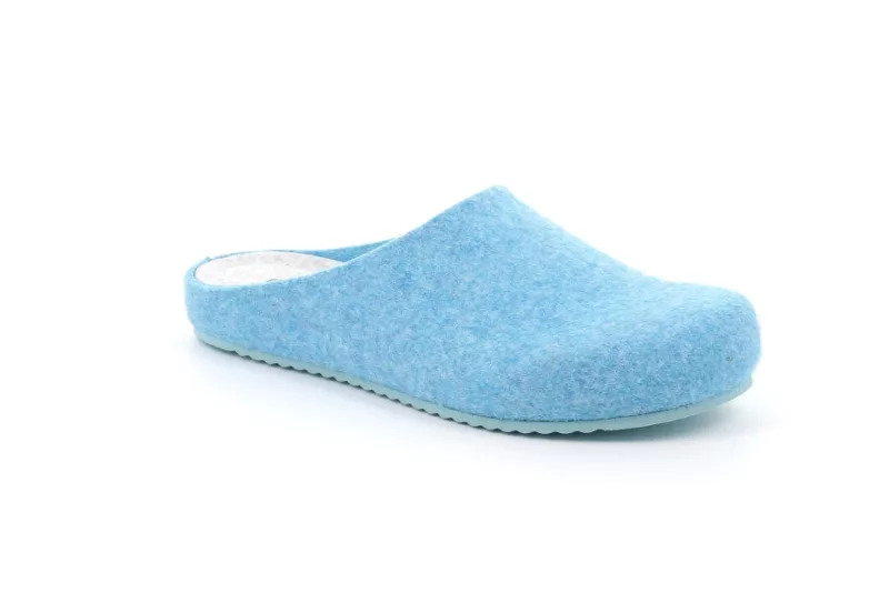Pratica e comoda, ciabatta in feltro con fondo in microporosa. La tomaia in contrasto con il sottopiede e il fondo colorati, donano a questa ciabatta da casa una vivacitร entusiasmante rendendo le vostre fredde giornate invernali piedi di calore e gioia.