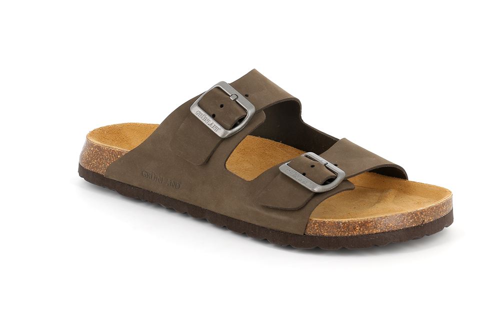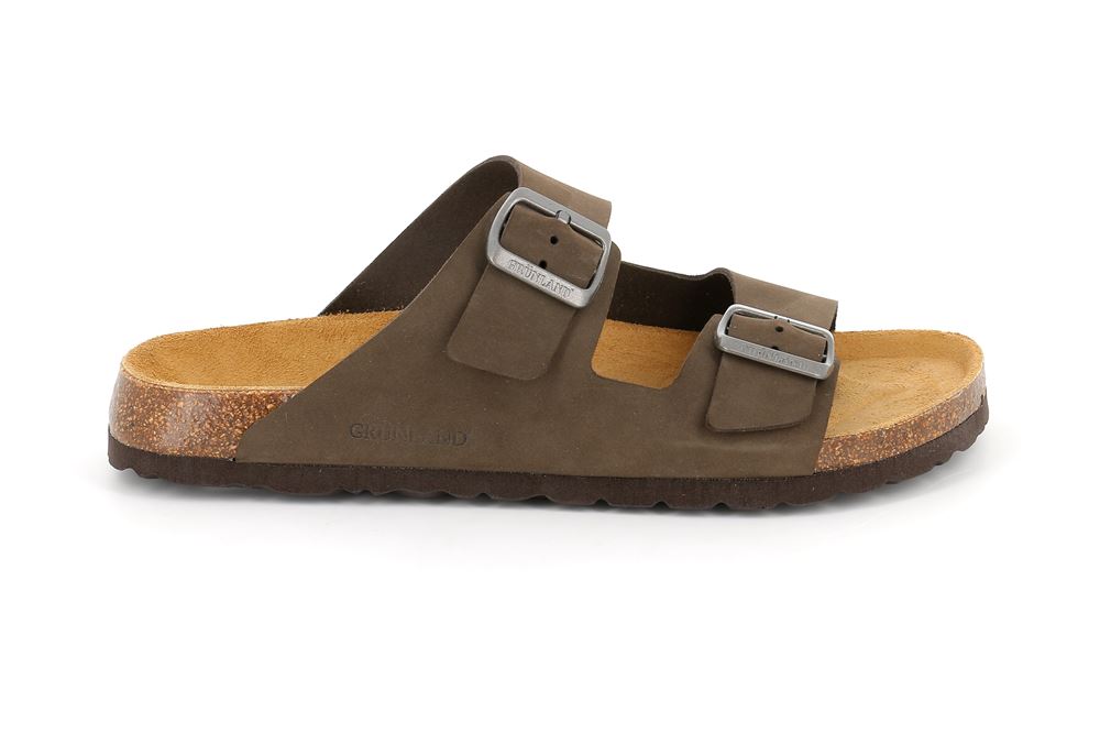 GRUNLAND CIABATTA UOMO DUE FASCE MARRONE/NERO/TAUPE