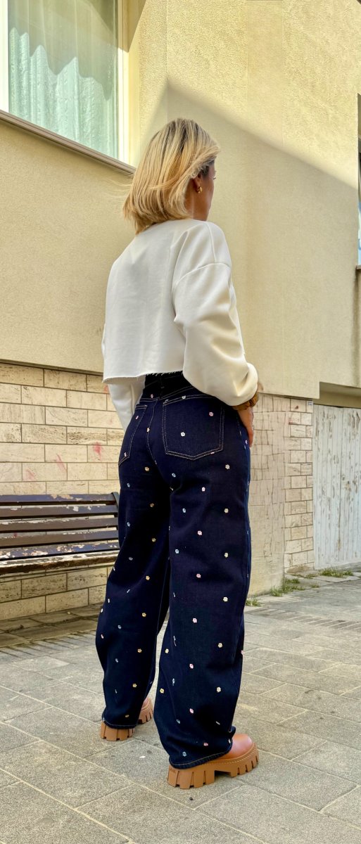 JEANS BAGGY CON MICRO FIORELLINI COLORATI