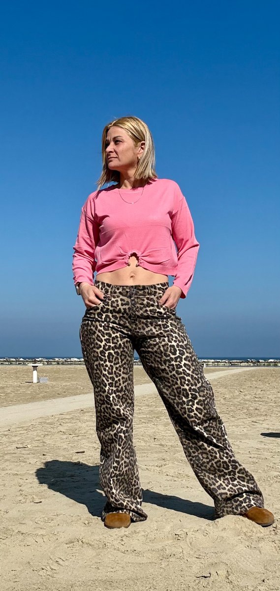 JEANS ELASTICIZZATO ANIMALIER GAMBA LARGA