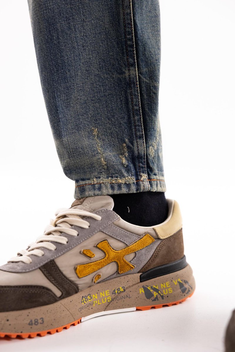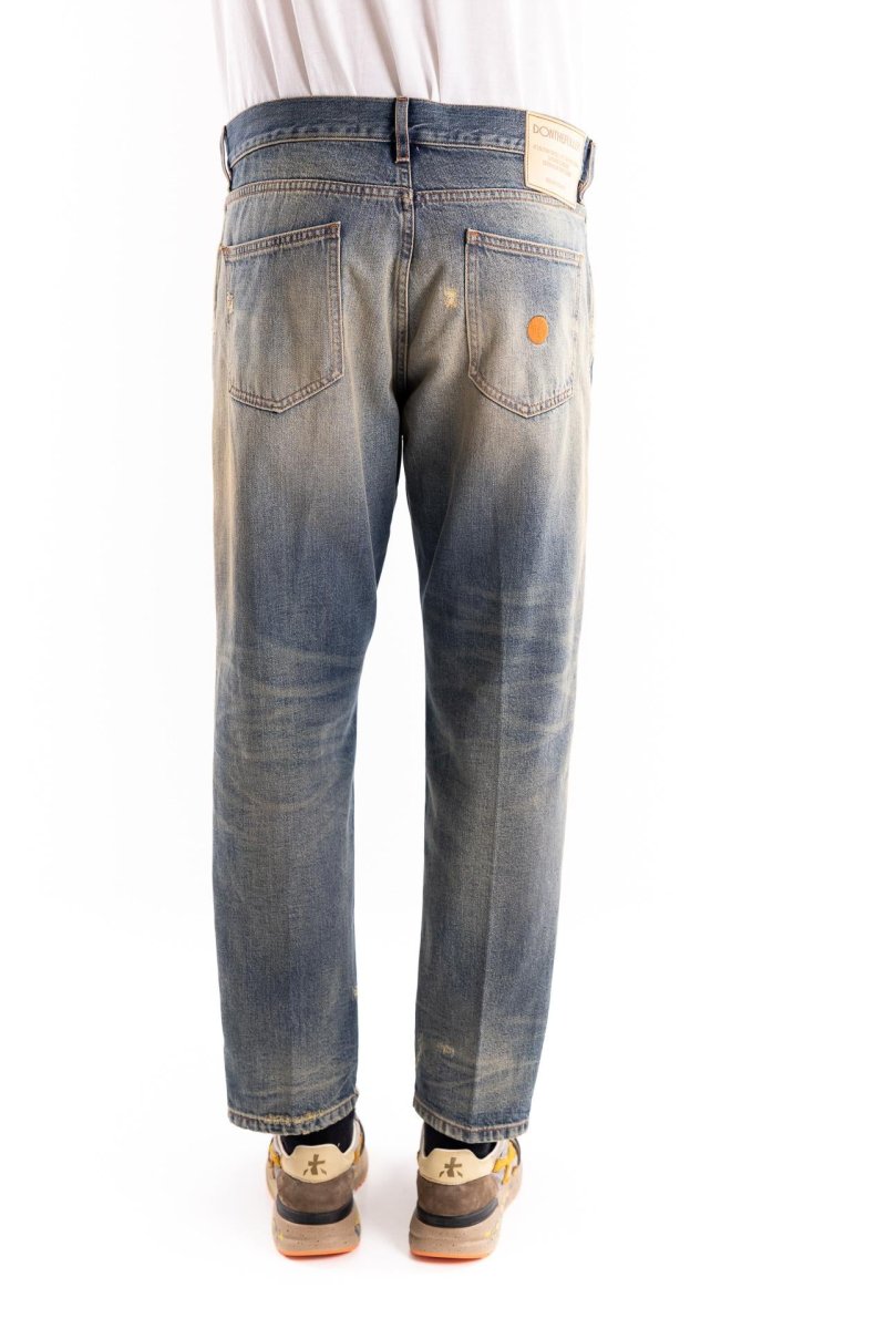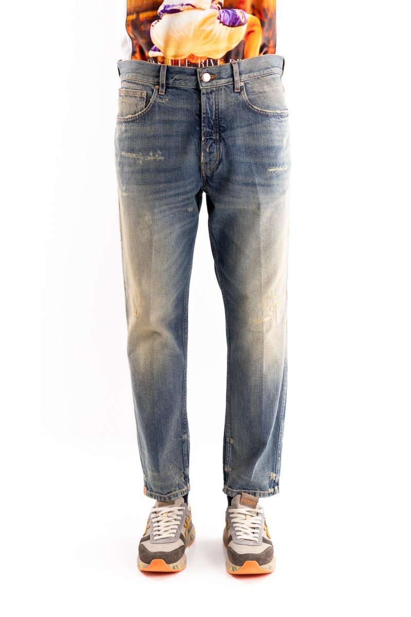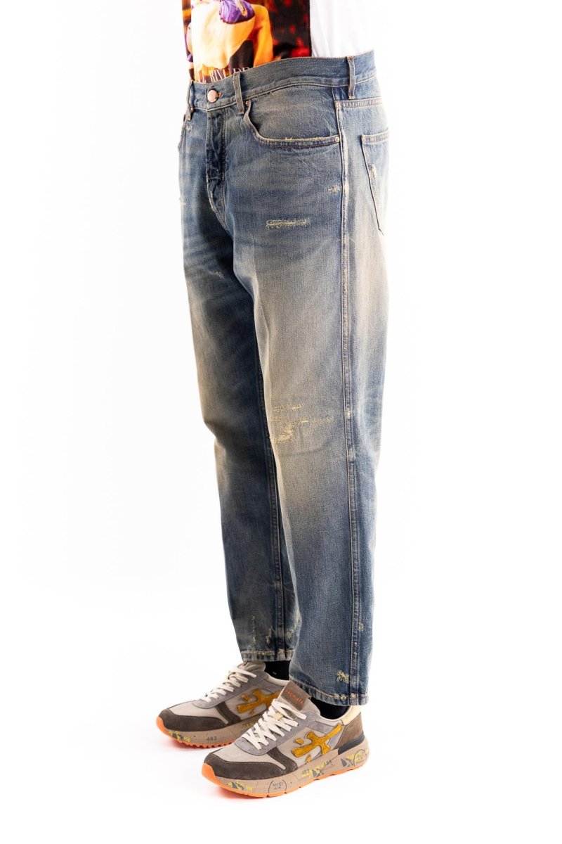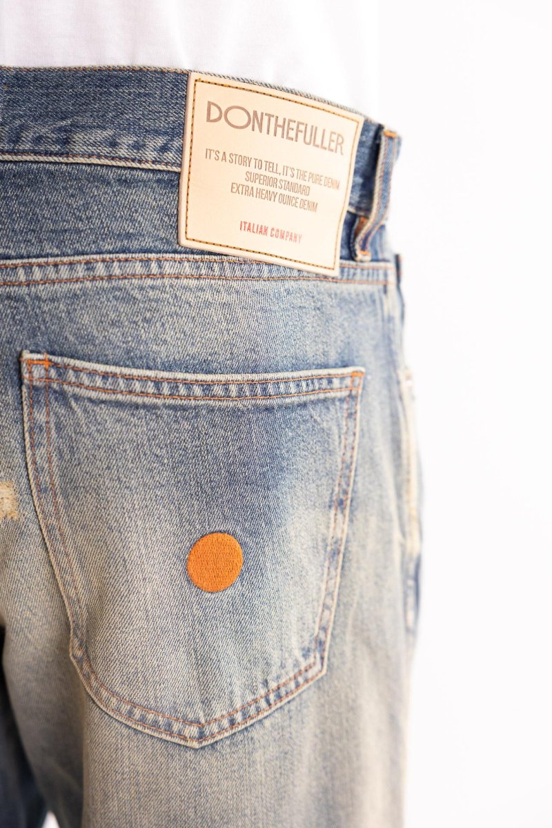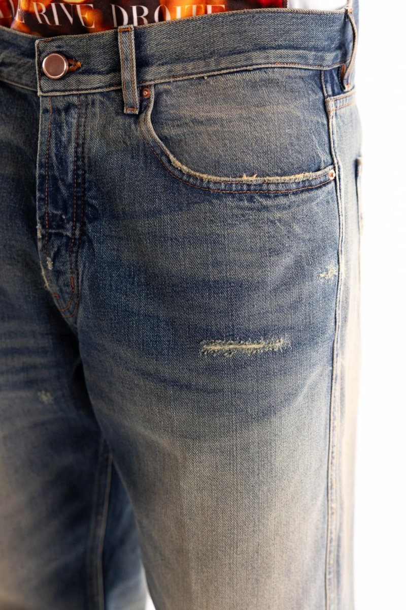 Jeans modello Seoul lavaggio 5021. Realizzato in denim blu chiaro lavato e sabbiato. Abrasioni e rammendi sparsi. Vita media con cavallo sceso, vestibilitร morbida che si strige alla caviglia. Lunghezza regolare con vestibilitร tapered. Bottoni con trattamento analergico e lavaggio ecosostenibile. Realizzato in una meravigliosa tela giapponese 100% cotone. Il modello รจ alto 1.80 e indossa una 33.