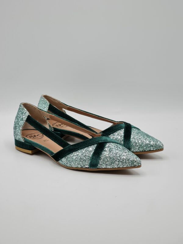LATIKA SCARPA BASSA GLITTER E VELLUTO PETROLIO