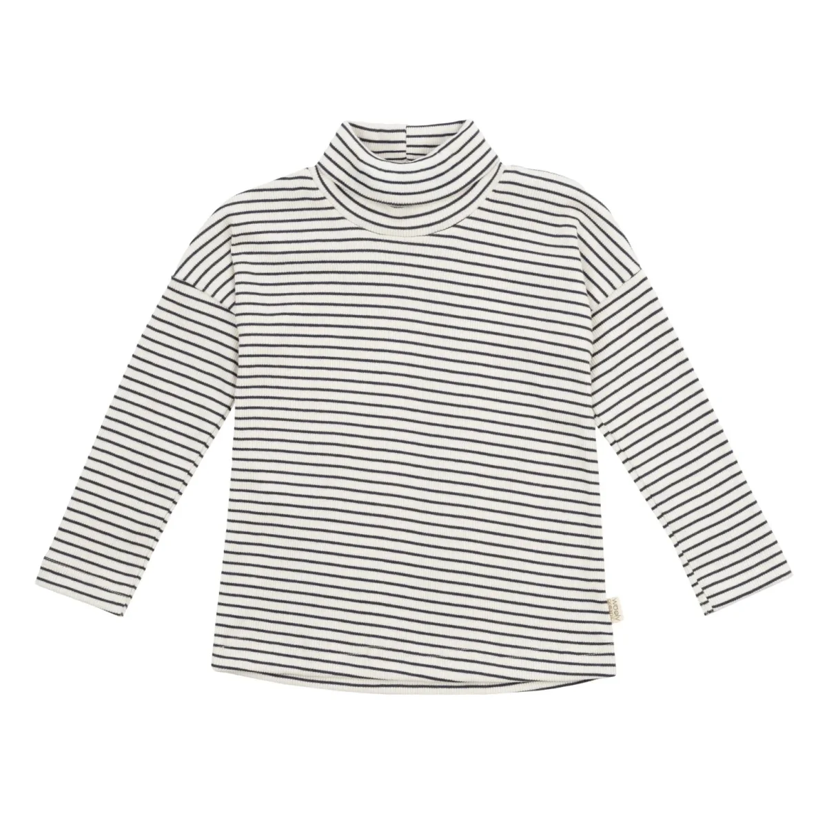 Scopri la maglia collo alto a righe Woolyorganic, un capo essenziale che unisce protezione e stile grazie al design con collo alto e alla qualitร superiore di tessuti naturali selezionati con cura. Realizzata con cotone certificato GOTS e morbide miscele di lana merino e seta, garantisce massimo comfort e delicatezza sulla pelle dei bambini.