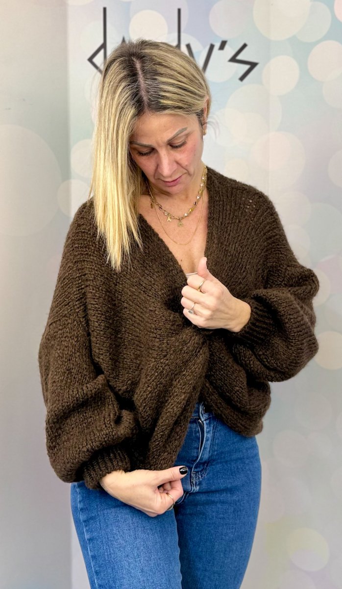 Versatile e facile da abbinare, questo maglioncino incrociato si indossa di giorno con una t-shirt per un look casual chic, oppure sopra una camicia per un risultato piรน elegante e ricercato. Un capo perfetto per chi vuole sentirsi comoda senza rinunciare allo stile.