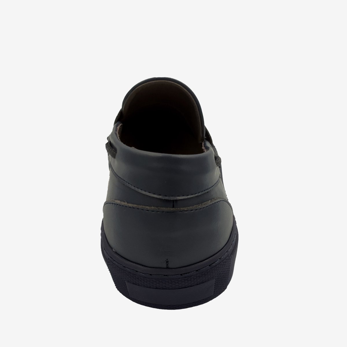 Mocassino sneakers casual senza lacci dal design minimale che non puรฒ non esserci in un guardaroba maschile. E’ un mocassino pensato per look sia formali che informali, da giorno e da sera, con pantalone lungo o bermuda, con camicia o t-shirt. ร realizzato in microfibra blu notte, con cuciture realizzate a mano. Gli interni sono foderati con pet riciclato, molto traspirante. Suola in morbida gomma a cassetta cucita. Laccio circostante tono su tono in cotone cerato. Molto comoda da indossare tutto il giorno.