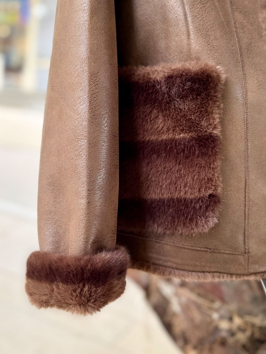 Il suo design double face consente di trasformare completamente il look in un solo gesto, passando da una texture liscia e pulita a un finish soffice e avvolgente. Ideale per chi ama giocare con la moda, questo montone ecologico รจ perfetto per creare outfit sempre diversi, mantenendo unโeleganza naturale in ogni occasione.