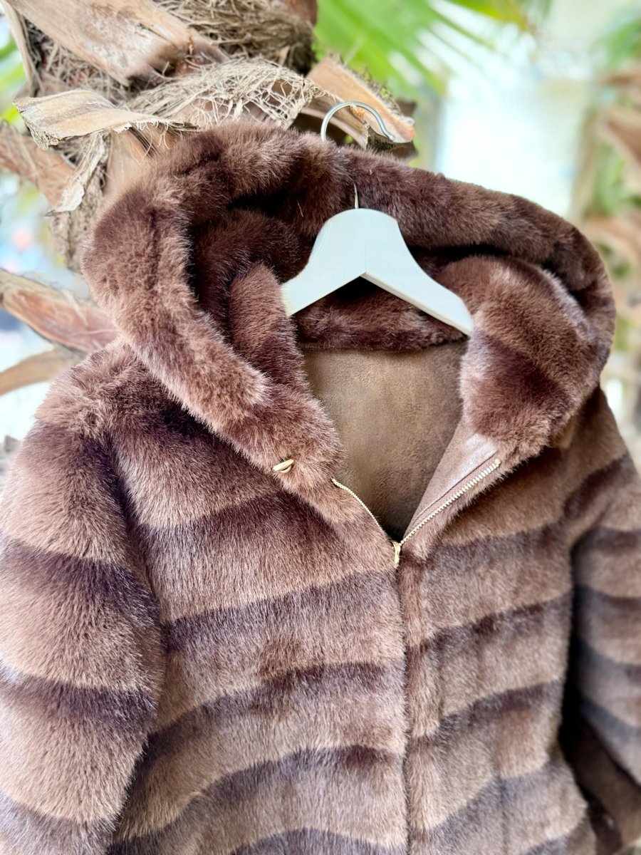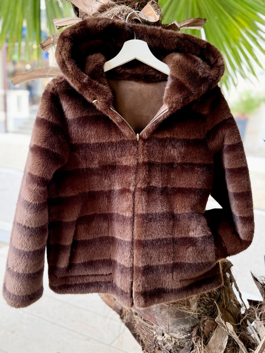 Elegante, caldo e incredibilmente versatile, il montone ecologico double face reversibile รจ il capospalla perfetto per affrontare la stagione fredda con stile e consapevolezza. Realizzato con materiali di alta qualitร , questo capo innovativo offre due anime in una: da un lato il classico effetto montone, dallโaltro un morbido pellicciotto ecologico dallโaspetto sofisticato e moderno.