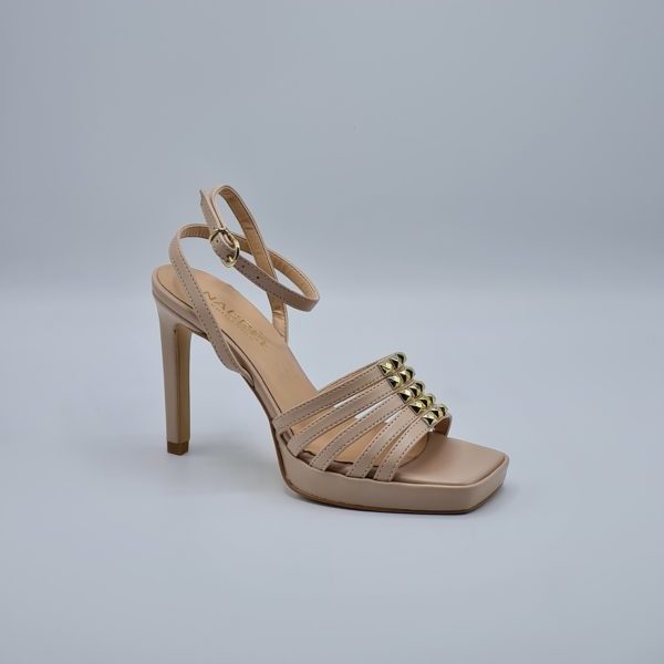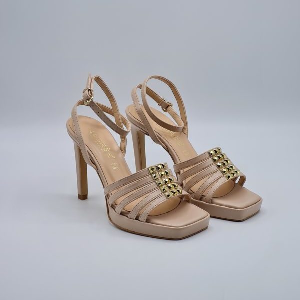 Nacrèe sandalo donna color nude , tomaia a fascette , cinturino regolabile alla caviglia , tacco fino di 10cm con plateau di 2cm.