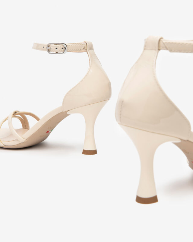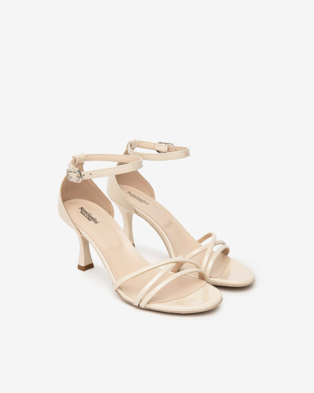 Questo sandalo Nero Giardini รจ elegante e raffinato,ย in vernice latteย con fasce incrociate. Ha un cinturino alla caviglia e un tallone chiuso per una calzata sicura. Il sottopiede รจ morbido, e il tacco misura 75 cm. La suola รจ in gomma. ร un sandalo perfetto per molte occasioni. MADE IN ITALY