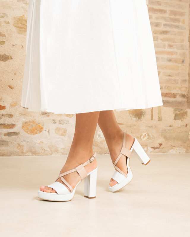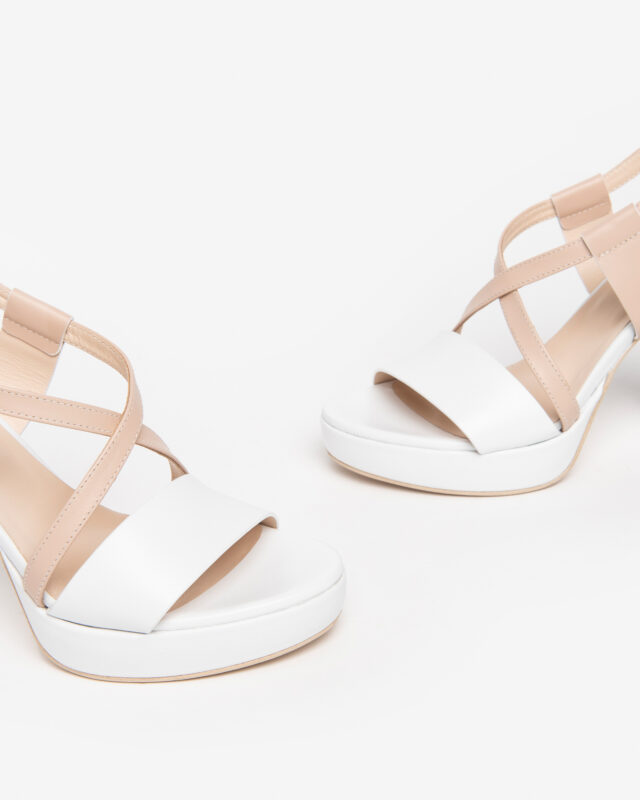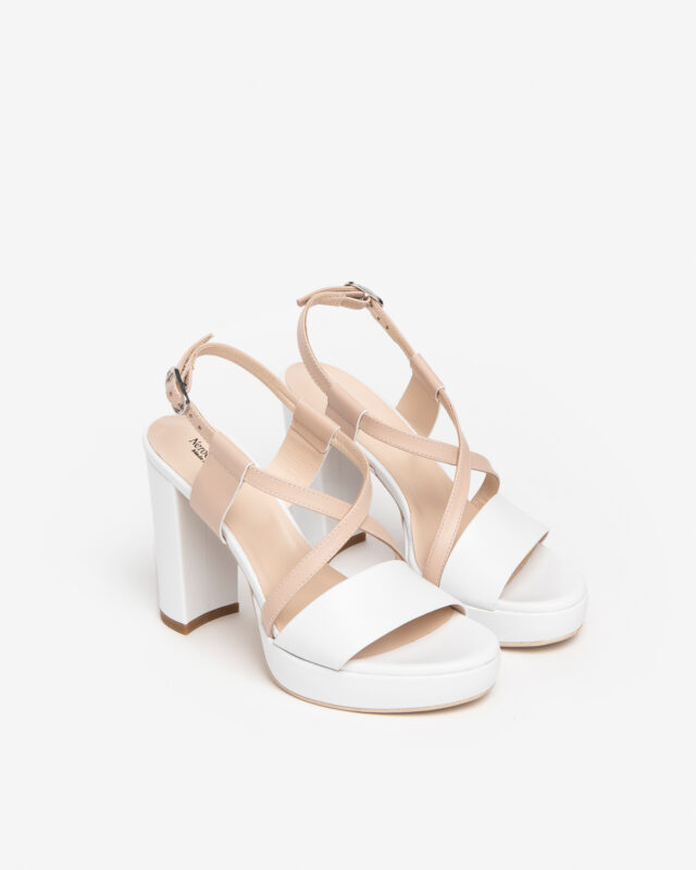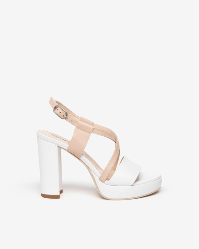 Il sandalo Nero Giardini รจ un’elegante calzatura realizzata in pelle bicolor bianco e cipria, con una tomaia caratterizzata da una fascia e un incrocio sul collo del piede, che conferiscono un tocco di raffinatezza. Il sottopiede in pelle assicura comfort durante l’uso. Con un tacco di 10 cm e un plateau di 2 cm, offre un’elevazione elegante senza sacrificare la comoditร . La suola in gomma assicura una buona aderenza e durata nel tempo. Un sandalo dal design sofisticato e versatile, perfetto per completare look sia casual che piรน formali.