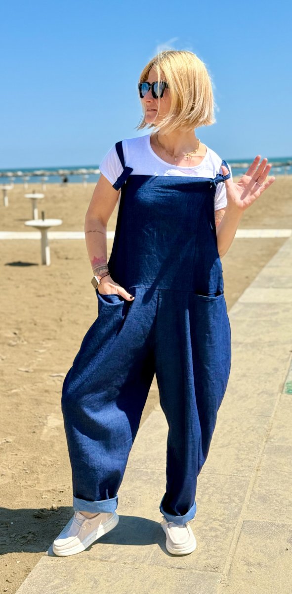 Scopri il perfetto equilibrio tra stile e comfort con questo completo donna composto da maxi salopette in cotone elasticizzato e t-shirt bianca basic. Un outfit casual dallo spirito contemporaneo, ideale per accompagnarti con disinvoltura in ogni momento della giornata, dalle passeggiate in città alle giornate di relax all’aria aperta.