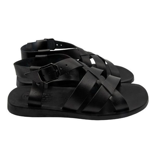 La versione nera, elegante e versatile, รจ pensata per lโuomo contemporaneo che non rinuncia mai alla personalitร anche nei dettagli. Il design intrecciato a listini multipli avvolge il piede con decisione ma senza costrizioni, garantendo un sostegno saldo e un look inconfondibile.