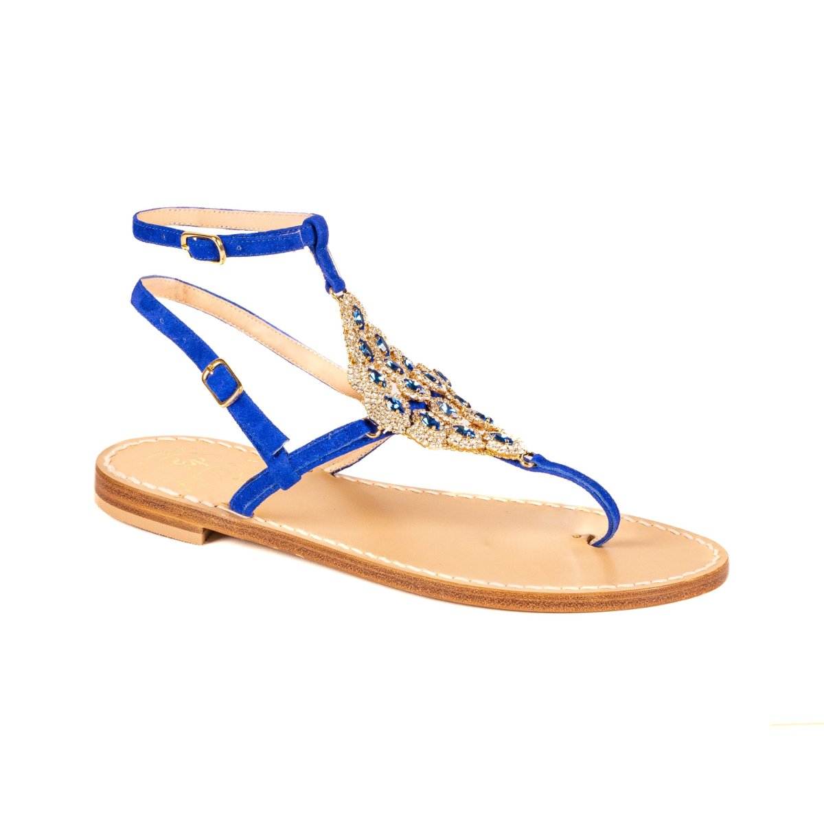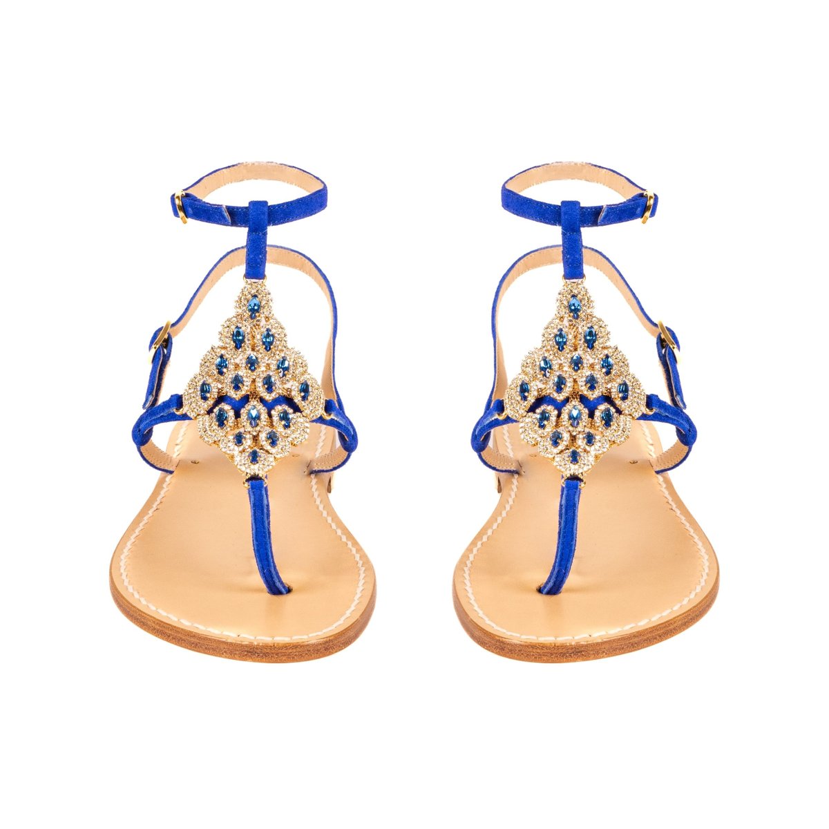 Suole realizzate in cuoio, e lacci in vera pelle, di Toscana. Applicazioni realizzate con mix di cristalli Preciosa, Swarovski, Ottone e Rame. Tutti i modelli sono realizzabili con suola classica, tacco 2,5cm (+5โฌ sul prezzo base), tacco 4cm (+10โฌ) e nera (+10โฌ sul prezzo base).