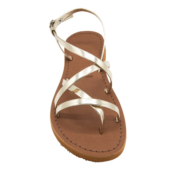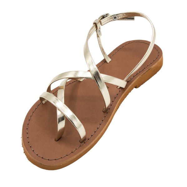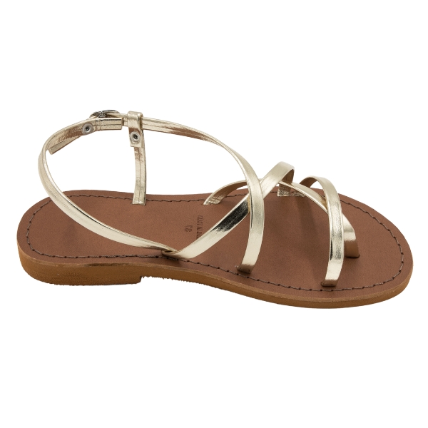 Sandali oro da donna realizzati in cuoio laminato platino