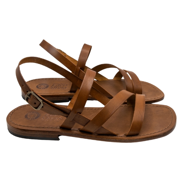 Facilmente abbinabili con ogni tipo di outfit, il modello Capri realizzato in cuoio color cuoio, รจ perfetto per chi ama indossare durante la stagione estiva dei sandali in cuoio pratici e prodotti con materiali di alta qualitร , che garantiscono al prodotto una lunga durata. I sandali artigianali Capri hanno una chiusura a gancio posta sul lato posteriore del sandalo, facilmente regolabile in base alla forma del vostro piede.