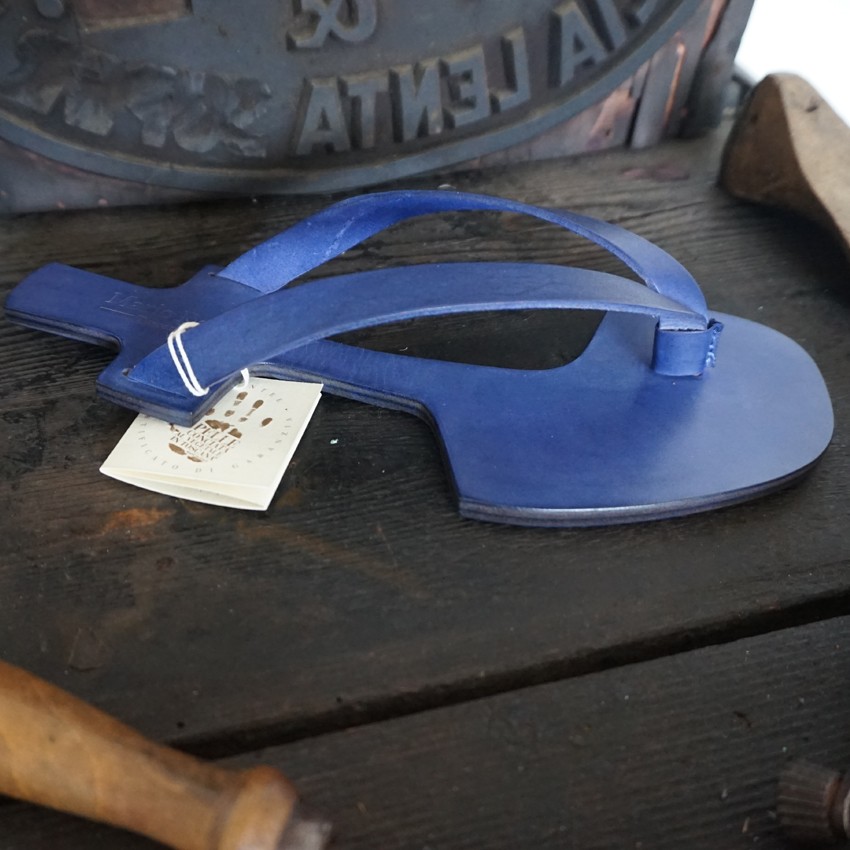 Anche per il Sandalo Barefoot infradito da uomo in pelle Mod. 06 la colorazione รจ effettuata a mano, in capo, e anche per questo, ogni sandalo รจ un pezzo unico.