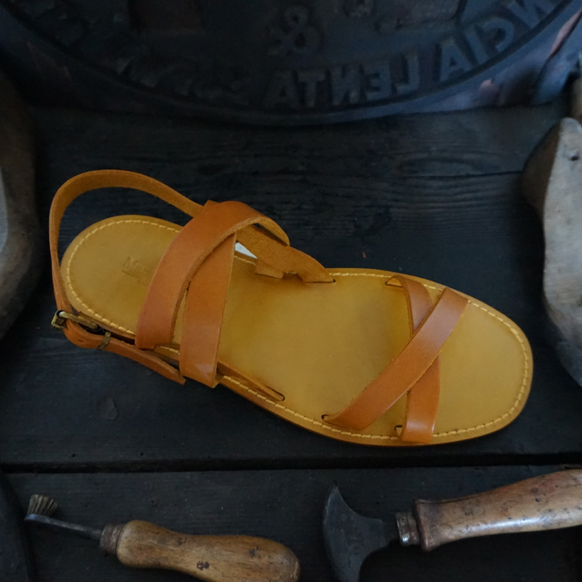 Sandali artigianali su misura in pelle al vegetale.